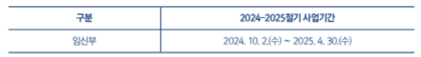 | 임신부 | 2024.10.2.(수)~2025.4.30.(수) |