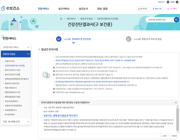 온라인 신청: 먼저, 보건복지부의 ‘건강보험공단’ 홈페이지에 접속하여 보건증 발급 신청을 합니다.
