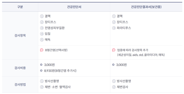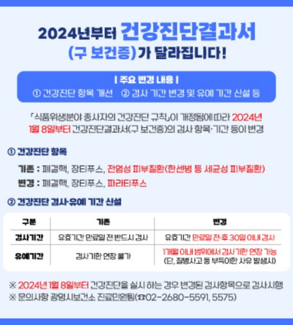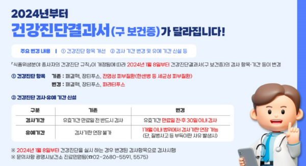 2024년부터는 건강진단 항목과 검사 유예기간이 새롭게 바뀌었습니다.