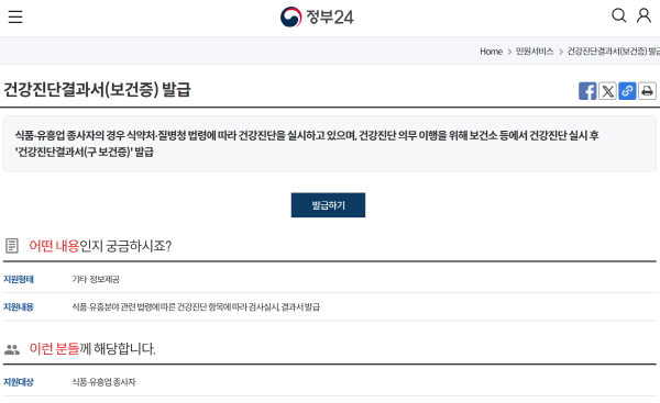 최근에는 인터넷을 통해 보건증 발급을 신청하고 발급받는 방법도 제공되고 있습니다.