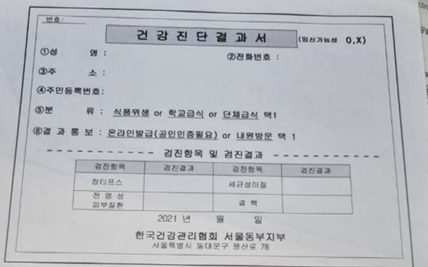 보건증 발급: 검사 결과 이상이 없으면 병원에서 보건증을 발급받습니다.