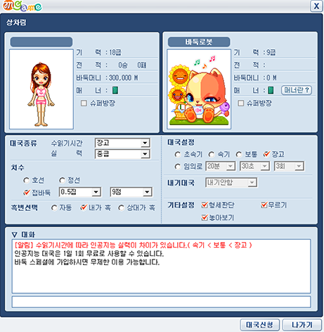 내기대국은 승강급 대국, 친선대국 모두 가능합니다.