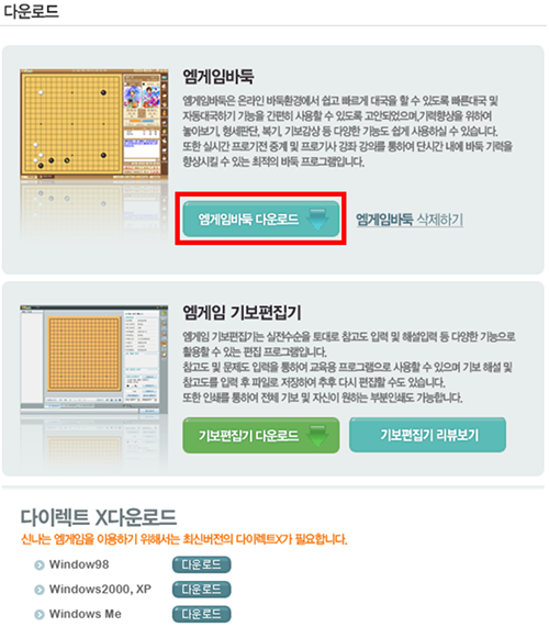 엠게임 바둑 홈페이지에 들어가시면 대국실 입장 아래 [다운로드] 메뉴가 있습니다.