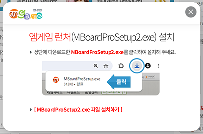 바로 실행이 안될 경우 위와 같은 팝업이 뜨는데 exe 파일을 다운로드 합니다.