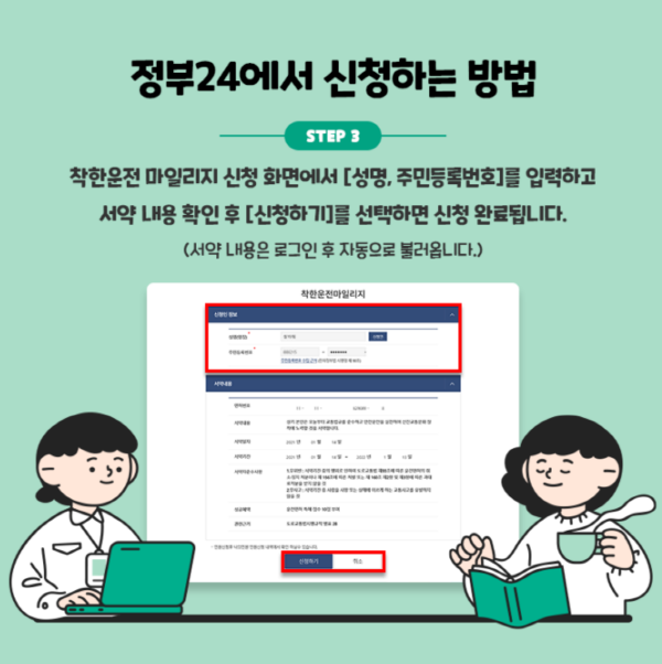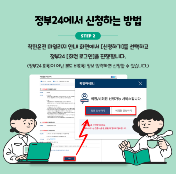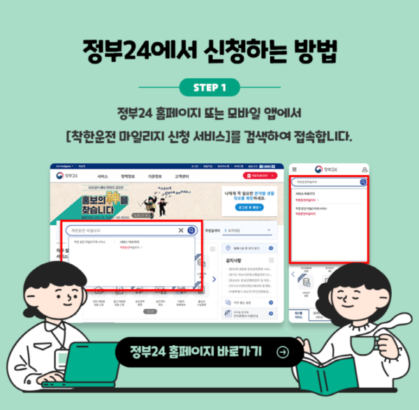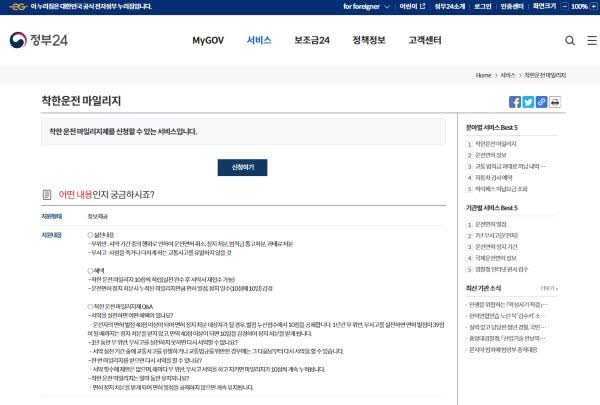 정부24에 접속하여 검색창에 '착한운전 마일리지'를 검색하고 신청할 수 있습니다.
