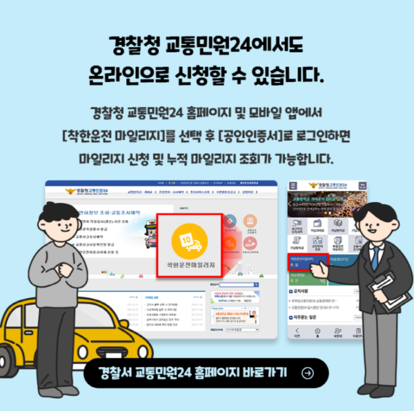 마일리지로 운전면허 벌점을 줄여주는 착한운전 마일리지를 신청하실 분들은 아래에서 바로 신청하실 수 있습니다.