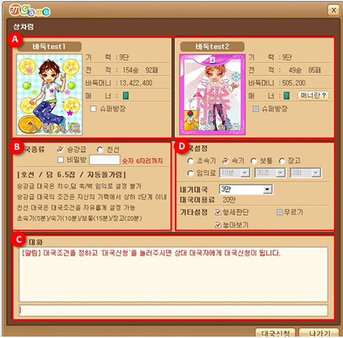 내기대국은 승강급 대국, 친선대국 모두 가능합니다.
