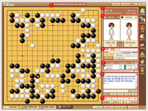 - 대국자 아바타 및 아이디, 남은 자유시간, 초읽기, 잡은 돌의 정보를 볼 수 있습니다.